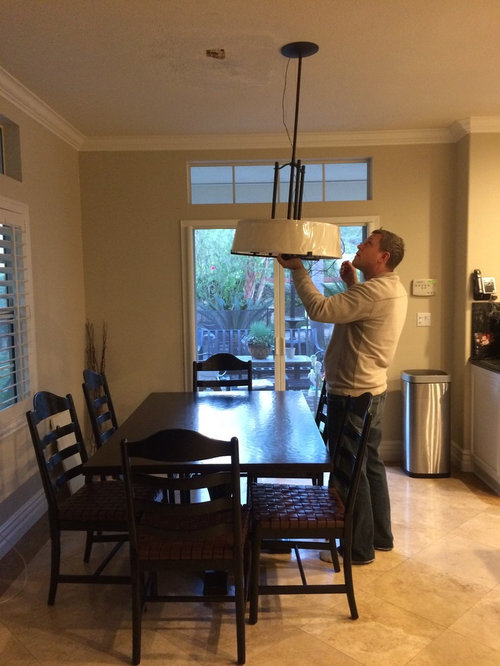 No biggie really, i was more than happy to change out these fixtures for something that shed a lot more light, but it meant learning how to hang a pendant light.